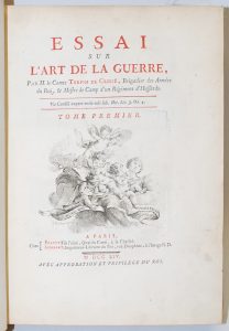 TURPIN DE CRISSÉ (Lancelot) - Essai sur l'art de la guerre. À Paris, Chez Prault et Jombert, 1754, 2 tomes en 1 vol in-4, vignettes gravées in-t., demi-basane fauve, dos lisses cloissonnés de filets dorés (reliure de l' époque). Reliure à...