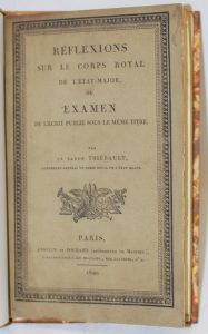 THIÉBAULT (Paul-Charles-François) - Réflexions sur le corps royal de l'état-major, ou examen de l'écrit publié sous le même titre. Paris, Anselin et Pochard, 1820, in-8, demi-basane fauve, dos lisse orné, couv. cons. (reliure moderne)....