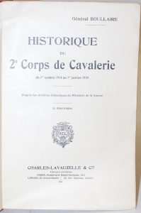 BOULLAIRE (François-René) - Historique du 2e corps de cavalerie, du 1er octobre 1914 au 1er janvier 1919. Paris, Charles-Lavauzelle, 1923, gr. in-8, broché. 21 cartes.