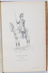 COSSE-BRISSAC (R. de) - Historique du 7e Régiment de Dragons, 1673-1909. Paris, Leroy, 1909, petit in-4, ill. in et h.-t., demi-chagrin rouge, dos à nerfs, couv. ill. cons. (reliure de l' époque). Ex-libris Gal Taufflieb. 7 cartes, 11...