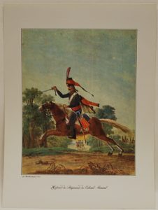BRUNON (Raoul et Jean) - Hussards. Marseille, Collection Raoul et Jean Brunon, s.d., gr. in-4, broché, couv. rempliée illustrée, en feuilles. 6 planches en couleurs.