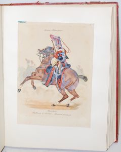 [COLLECTION MATHIOT] - [ARMÉE FRANÇAISE. ALBUM DE 80 P¨LANCHES SUR PAPIER BRUN] contrecollées, sur papier fort de nuance claire, le tout monté sur onglets. S.l.n.d., in-folio, demi-chagrin rouge, dos orné, tête dorée (reliure de l'...