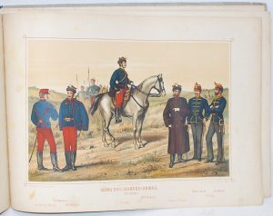 Intéressant album présentant les costumes de l'armée impériale et royale autrichienne, ainsi que ceux des corps spécifiques au Royaume de Hongrie.