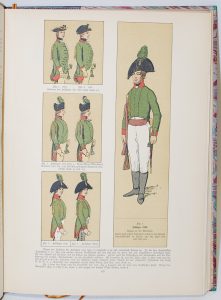 Troisième et dernier de la grande histoire du costume militaire prussien de Kling, consacré aux bataillons de fusiliers et de chasseursExemplaire du Prince de la Moskowa, avec vignette ex-libris contrecollée sur les premières gardes.