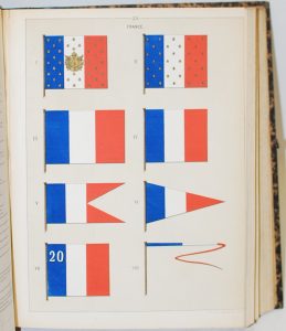 LE GRAS (A.) - Album des pavillons, guidons, flammes de toutes les puissances maritimes. Publié sous le ministère de S. E. l'Amiral Hamelin. Paris, Bry, 1858, in-4, demi-chagrin bleu, dos à nerfs (reliure de l' époque). ►Bel et rare album...