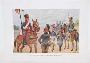 LEZIUS (Martin) - Die Entwicklung des deutschen Heeres. Uniformtafeln. S.l. [Berlin], s.d., (1935), petit in-4, en feuilles sous chemise grise à rabats. Des défauts. 32 planches en couleurs d'après les aquarelles de Herbert Knötel le jeune.