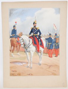 Recueil d'aquarelles originales signées de l'ancien colonel Auguste de Moltzheim (1822-1881), qui s'est occupé d'uniformologie depuis le début de sa carrière militaire.
