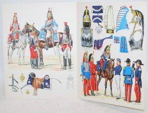 ROUSSELOT (Lucien) - L'armée française, ses uniformes, son armement, son équipement. Paris, Arches-Johannot-Marais, 1956-1971, in-4, pl. sous 3 chemises cartonnées, dos toile grège. Regroupement des 106 planches documentaires en couleur dans...
