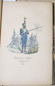 VERNET (Horace) et Eugène LAMI - Collection des uniformes des armées françaises de 1791 à 1814, dessinées par H. Vernet et Eug. Lami. Paris, Gide Fils, 1822, in-4, demi-chagrin vert à coins postérieur, dos à nerfs, tête dorée. 100...