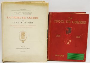 WEISS (René), A. KLING et D. FLORENTIN - La Croix de guerre de la ville de Paris. Paris pendant la guerre. Le bombardement. L'hommage au général Galliéni. Paris, Imprimerie Nationale, 1921, gr. in-4, pl. dont en couleurs, broché. ▬ [Avec:...