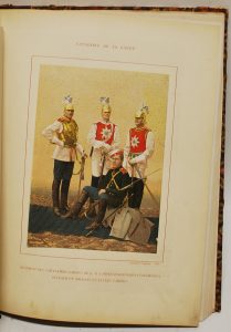 ►Exceptionnel album de photographies, exécuté par les frères de Jongh, présentant les différents corps de l'armée russe dans les années 1890, album dédié avec permission, au tsar Nicolas II.