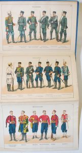 RUHL (Moritz) - Die Armeen der Balkan-Staaten (Türkei - Griechenland - Rümanien - Serbien - Bulgarien - Montenegro) in ihren gegenwärtigen Uniformirungen. Leipzig, s.d., in-12. Toile bleue, premier plat de couv. ill. 10 planches en...