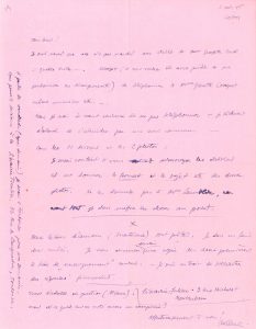 dessins et 2 photos. « Deux lettres d’amour (Anatomie) sont prêtes. Je dois en faire deux autres »… Mardi soir [16 ?]octobre 1945. « Qu’est-ce que deviennent Simonne Lamblin et Alain Gheerbrant ? Depuis longtemps je suis sans nouvelles : je les attends impatiemment, car il faut se mettre à la fabrication du livre. – Il n’est pas exclu qu’Éluard refuse la publication de ses textes. À ce moment-là il s’agit d’en faire d’autres – ou d’éditer les photos sans textes ? »… Carcassonne 18 juin 1947. « Je n’ai pas oublié les “Lettres de l’Âge d’Or” que je vous ai promis. Brün s’en est occupé. Je viens de relire tout. Je le renvoie à Brün […]. Je ne sais pas si je pourrai venir maintenant à Paris pour l’Exposition. – Je n’ai pas de l’argent et je verrai peut-être passer outre la seule chance de me sortir de ce trou mortel de Carcassonne »… 28 octobre 1948. Il n’a retrouvé qu’une partie des négatifs, mais pense envoyer toute la série (6 x 6) dans une dizaine de jours. « Quant à la reproduction de Tour menthe-poivrée…, je me suis mis d’accord avec le graveur. – Seriez-vous assez gentil de vous mettre en rapport avec lui et de lui confier l’original ? »…
