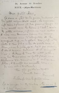 oiseau était mort. La maman s’est mise à pleurer et ton pauvre bougre de père avait aussi la larme à l’œil. Mais les petits oiseaux, c’est comme nous autres : si nous nous bourrons comme des canons nous crevons aussi d’indigestion, et il mangeait trop, on le gâtait trop ; c’est notre faute à tous s’il a rendu sa petite âme à Dieu ; dans le jardin ça ne serait pas arrivé ; il était toujours ballonné et il manquait d’air. – Enterre-le dans ton petit jardin »….Correspondance (92-24). Ancienne collection Francis Poulenc.