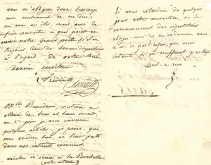 Victor Hugo. Il pense que l’horizon s’éclaircit « et qu’enfin vous apercevez le port, dans lequel vous devez nous faire tous entrer au bruit du triomphe ». Il est à Rochefort « dans une sphère totalement étrangère à tout ce qui se passe dans le monde artistique, pas un journal, pas une seule nouvelle »… Il s’ennuie, et voudrait savoir « à quel point en arrive notre grand poète et s’il est toujours dans de bonnes dispositions à l’égard de votre tout dévoué serviteur »... Il recommande Mlle Beaudouin qui connaît de beaux succès : « je pense que vous voudrez bien en tirer parti dans nos intérêts communs ». Il prie de l’avertir « si vous retardiez de quelques jours votre ouverture, ou le commencement des répétitions »… [Ruy Blas sera créé le 8 novembre 1838, à la Renaissance, avec Frédérick Lemaître dans le rôle de Ruy Blas, et Louise Beaudoin dans celui de la Reine d’Espagne.].[Lyon] 6 août 1845, à Théodore Cogniard, directeur du Théâtre Saint-Martin. Il vient d’apprendre que son frère vient d’être nommé directeur du Vaudeville, et l’en félicite. Comme c’était ce dernier qui était chargé de la mise en scène des drames au Théâtre Saint-Martin, il se propose pour le poste, désireux « de resserrer le lien de nos amicales opérations » : « peut-être vous manquera-t-il à cet endroit ; et si vous vouliez en charger quelqu’un […] et que vous me crussiez digne de remplir cette charge ; Eh bien ! nous pourrions nous entendre, à ce sujet ! »…