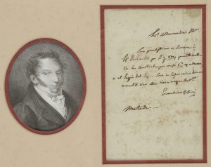 *Gioacchino ROSSINI (1792-1868). L.A.S., mardi, au Sgr Aldrovandini ; ¾ page in-8 (rousseurs) ; en italien (encadrée avec une photographie)..Il est prêt à aider le Sgr Sobianski (?) pour 800 livres contre une lettre de change à 6 mois au...