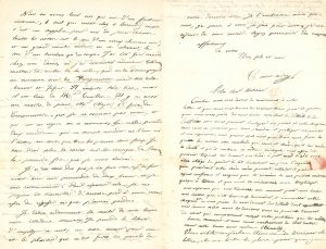 son maître : « La manière dont vous vous êtes fâché l’autre jour, ainsi que toutes les autres leçons, me prouve l’amitié que vous avez pour moi. Aussi je vous aime tous les jours davantage ». Il a fait une grande promenade avec sa nourrice et sa petite sœur et a dormi douze heures….Wassy 2 août 1846, à la suite d’une lettre de sa grand-tante Mme Masson née Gayard (donnant des nouvelles de la famille). Il raconte à son « bon maître » son voyage de Paris à Wassy et ses activités : « Le piano de M. Fourier est vieux, mou et dur ; et celui d’une de mes cousines, qui est la mairesse du pays, a l’air d’avoir été cassé à coups de marteau. Hier, dimanche, en l’honneur des fêtes de juillet on a illuminé les promenades et l’on a dansé. Un orchestre de trois instruments s’essoufflait pour jouer en même temps une demi-douzaine de chansons, les lampions laissaient tomber des gouttes enflammées, les ifs s’enflammaient et la canaille… Je ne finirais pas de vous détailler cette horrible fête »….Wassy 9 août 1846, à la suite d’une lettre de sa mère Clémence Saint-Saëns. Comme sa mère, il s’inquiète de la santé de Mme Stamaty et s’ennuie loin de son maître : « je partage vos tourments, et je voudrais qu’il fut en mon pouvoir de les faire finir » ; et il termine : « J’ai aujourd’hui 11 ans moins deux mois »..Chaumont 26 août 1846. « Dans le pays des aveugles, les borgnes sont Rois ». Il a joué à Wassy : « Le meilleur piano du pays ressemble beaucoup à mon carré, et comme personne ne sait, j’ai été porté jusqu’aux nues, même quand je jouais à vous mettre en fureur. Ma sonate de Beethoven a fait un effet colossal, qu’elle fait encore à Chaumont. J’ai été au couvent, où j’ai trouvé un piano mauvais et faux, sur lequel je ne pouvais faire une note sans crier ; impossible de mettre la moindre expression. […] À Chaumont, les pianos sont bons pour la plupart. Plusieurs sont de Pleyel et d’Érard », mais celui qu’il a loué est affreux : « toutes les notes ont le son d’un vieux clavecin usé, et un grand nombre rendent, en se relevant, le son d’un bouchon qu’on coupe ». Il a joué un morceau sur Les Huguenots de Kalkbrenner et Lafont, accompagné par le maître de violon de la ville ; il y a aussi un maître de piano qu’il ne connaît pas encore et « deux accordeurs qui ne savent accorder ni l’un ni l’autre, en sorte que tous les pianos sont faux »… À la suite, Clémence Saint-Saëns écrit une lettre, terminée par Mme Masson née Gayard, où elle s’inquiète de la mauvaise santé de la mère de Stamaty..Paris 2 décembre 1846 : il se réjouit de la prochaine venue de Stamaty (« Mon bon père ») : « Mon cœur a besoin de son père et de son meilleur ami. Je jouerai samedi prochain avec monsieur Franchomme l’œuvre 5 des sonates de Beethoven. Je voudrais aller rue Richer pour jouer celles pour piano seul »….S.d. Il est flatté que son « bon et cher maître » l’appelle « monsieur » : « Je vais travailler ferme, pour que vous ne vous aperceviez pas que j’ai été aussi paresseux […] Je vous prie de ne plus me dire monsieur, mais je veux désormais être votre petit bichon bien aimant et bien reconnaissant »...