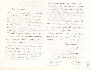 volantes formats divers, et registre relié dos peau verte d’environ 144 pages [PPT3-4]..Correspondance envoyée par Taffanel..Brouillons de lettres sur feuillets volants, ou dans un cahier d’écolier, à Joachim Andersen (annonçant le succès de sa composition), Edme-Marie-Ernest Deldevez (pour regretter la démission du chef d’orchestre de l’Opéra), Louis Dorus (envoi d’une transcription pour flûte), Roland Gosselin, Georges Jacobi (annonce de la naissance de sa fille Jeanne), Victor Mahillon (réponse à son Étude sur le doigté de la flûte Boehm), Jules Simon, Auguste-Emmanuel Vaucorbeil (au moins 4, pour se plaindre au directeur de l’Opéra de son confrère Altès, demander un congé, proposer sa démission, etc.), Charles-Marie Widor (prière d’intervenir auprès de Mme Trélat), un homme de loi (concernant son contrat de mariage resté entre les mains d’un notaire), un ami compositeur (pour expliquer comment il a manqué à l’essai de son œuvre), aux membres du Comité du Conservatoire (suite à la fondation de la Société de Musique de chambre pour instruments à vent), au rédacteur en chef du Gaulois (contestation d’une campagne contre l’orchestre de l’Opéra), à ses collègues de la Société des concerts (plaidant pour la réforme de l’affichage)… D’autres à des élèves ou parents d’élèves, son père (2), un maître, un amateur, un rédacteur, un éditeur, etc..Registre de copies de lettres (plus qqs ff. volants), la plupart à des musiciens, compositeurs, administrateurs de conservatoires ou de théâtre : Alfred Turban, Louis Diémer, Léopold Delédicque, Adolphe Bourdeau, Adrien Barthe, Alfred Quesnay, Clémence de Grandval, Léopold Lafleurance, Joachim Andersen, Hermann Wolff, Jules Bordier, les éditeurs Hug frères, Johannes Donjon, François Gevaert, Ernest Chausson, Friedrich Gernsheim, Ernesto Köhler, Georges Bossière, Julien Tiersot, Joseph Jemain, George Treherne, Aimé Gros, P. Jurgenson, Max Ermansdörfer, Antony Simon, Charles Boesch, Rudolph Nováček, etc., ainsi qu’à ses proches : sa femme Geneviève, sa belle-mère, Mme Deslignières, son père, sa tante Louise Lefèvre…, avec répertoire alphabétique autographe à la fin, recensant les 80 destinataires.