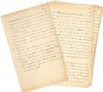 complétée par Philippe Gaubert, vit le jour en 1923)..* Manuscrit autographe de premier jet d’une traduction de R.S. Rockstro, A Treatise on the Flute (Londres, 1890) (environ 275 pages petit in-4 ou in-8, incomplet). – 6 cahiers autographes d’écolier, lettrés de « A » à « F » (plus de 260 pages petit in-4), donnant une mise au net corrigée de cette traduction (incomplète). Taffanel a indiqué la pagination du texte anglais, l’emplacement de figures, tables, etc., quelques questions, doutes ou critiques..* Brouillon autographe d’un article sur l’histoire de la flûte pour l’Encyclopédie de la musique et Dictionnaire du Conservatoire d’Albert Lavignac et Lionel de La Laurencie (1913-1931) [qui sera complété par Louis Fleury et publié en 925] (8 p. in-8). Plus un manuscrit de travail par un collaborateur avec annotations pour une Méthode de flûte (13 p. in-fol., défauts)..* Manuscrit autographe d’un fragment du chap. 4 de Theobald Boehm, De la fabrication et des derniers perfectionnements des flûtes, d’après la version anglaise (4 p. in-fol.). Fragment manuscrit d’une traduction de History of the Boehm Flute de Christopher Welch, Londres 1883, avec notes autographes de Taffanel (42 p. in-4). Copie manuscrite signée D. Julliot, La Flûte et le jeu de flûte […] de Théobald Boëhm, « d’après une traduction » (incomplète) de Die Flöte und das Flötenspiel « prêtée » par Taffanel (cahier de 63 p.)..* Notes de lecture et de bibliographie, brouillons, la plupart autographes (environ 85 p. formats divers), à propos de Th. Boehm, A. Lefort, l’histoire de l’instrument et sa place dans l’opéra français, le répertoire (dont qqs notes sur Armide et Persée de Lully, et des extraits musicaux du Triomphe de l’amour). 2 croquis, tableau chronologique indiquant la durée de vie des flûtistes, de Lambert à Devienne. Plan de Perfectionnements à la flûte système Boëhm offert au roi des flûtistes, 1901, avec légendes et notes autographes de Taffanel..On joint des coupures de presse du Magasin pittoresque (1868) et du Monde orphéonique (1902). Prospectus d’améliorations brevetées par le facteur florentin Pupeschi (1907). Etc.