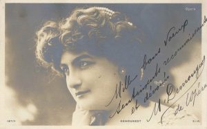 CHANT. 34 L.A.S. et 9 cartes de visite autographes de chanteurs ou chanteuses, à Paul Taffanel..·    Aïno Ackté (5), Emma Calvé, Rose Caron (4), Marie Delna (2), Marcelle Demougeot (photo dédic.), Fidès Devriès, Lucien Fugère (3, plus 2...