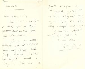 Eugène GIGOUT (1844-1925). 10 L.A.S. et 2 cartes de visite autographes, vers 1900, à Paul Taffanel ; 18 pages in-8 ou in-12..Félicitations, rendez-vous, répétitions, notamment de sa Méditation pour violon et orchestre (9 août 1900) et des...