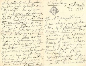 pour prendre part à un de nos concerts. On se réjouit beaucoup de vous entendre ». Il ne pourra malheureusement pas lui « faire personnellement les honneurs de Moscou, car dès la fin de janvier, j’entreprends une grande tournée en Allemagne », et il ira ensuite à Paris pour voir ses amis. « Le chef d’orchestre de notre Société Mr Max Erdmansdoerfer vous prie de vouloir bien le prévenir quel est le morceau ou les morceaux que vous jouerez et de lui dire où et comment peut-on obtenir les partitions et les parties séparées que vous ferez entendre aux Moscovites ». Il est sûr « que la Section de notre Société de Petersbourg profitera de votre voyage à Moscou pour vous inviter à jouer à Petersbourg »… Il renouvelle ses regrets : « Je suis bien malheureux en pensant que je ne serai pas là quand vous viendrez »…