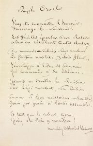 Marceline DESBORDES-VALMORE. Poème autographe signé « Marceline Desbordes Valmore », Simple Oracle ; 1 page in-8.