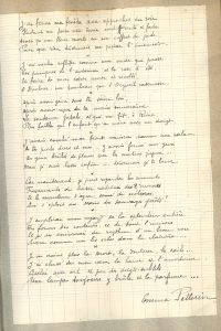 et proses : La Vasque, Printemps, Pluie d’avril, La Statue, La Passante, Rosamonde « conte moyenâgeux », Lysicos « conte grec », etc. Quelques lettres et poèmes sont datés de 1915-1924. Plus quelques poèmes d’amies, et des copies. À la fin, liste d’ouvrages en vente à la Librairie Pellerin à La Rochelle (plus qqs doc. joints). [Emma Pellerin a publié deux recueils de poèmes, Chrysanthèmes (1917), et, en collaboration avec Joseph Bollery, La Chasse infernale (1922, frontispice de Louis Suire).