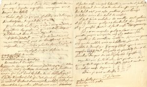 meubles extrêmement chers, et se détermine à faire venir matelas, meubles, tout ce qui lui est nécessaire, par roulage… « Dites à toutes mes connoissances de m’adresser mes lettres à moi directement ou sous le couvert de St Leon »… Il charge Grand d’une commission à Grosbois, et donne des instructions pour une lettre de change. « Si vous avés le temps voyés aux environs de Grosbois les personnes qui m’ont temoigné de l’attachement lors de mon depart. Soyés tres prudent avec tout le monde car on ne manqueroit pas de transformer en conspiration la moindre plainte de votre part »… Suit la liste d’objets dont il a besoin : 10 à 12 matelas de maître, 5 ou 6 lits, 18 ou 20 matelas de domestique, oreillers, traversins, « la commode et le secretaire acajou qui sont dans le sallon de la bibliothèque », rideaux et garniture de lit, fauteuils de chambre, etc. « Il faut faire emballer les meubles de la galerie et sil s’y trouve quelques bois de lit bon propre et qui puisse servir il faut aussi les envoyer. S’il y a en magasin quelque feux avec peles pincettes propres envoyés les, ainsi qu’une consoles. Ajoutés y les couvertures necessaires »…