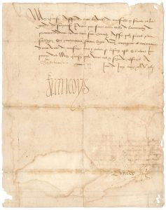page in-4, adresse au verso (mouillure sans atteinte au texte, fentes réparées)..Protection de Marseille. « Mon Cousin Affin de tenir la ville de Marseille en seurete et la garder de surprinse je vous prie faire aller ceulx de larriereban de Prouvence dedans ladicte ville sans chevaulx affin quilz soient plus soullagez et pareillement faictes loger vostredite compaignie es environs dicelle ville de Marseille pour y entrer si besoing est »…