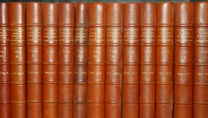 TALVART (H) et PLACE (Joseph) - Bibliographie des auteurs modernes de Langue Française (1801-1927) Paris, Chronique de lettres françaises, 1928. 18 vols. grands in-8, reliés en dem. maroquin tabac, dos à nerfs covs. conserv. Bel exemplaire,...