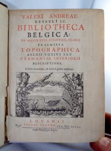 DESSELI (Valeri Andreae) - Bibliotheca BELGICA, De Belgis Vita Scriptisq Claris, praemissa Topographica Belgii totius seu Germaniae inferioriis descrptione... Lovanii, Iacobi Zegers, 1643. Très fort in-4, veau époque. ►Importante...
