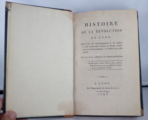 HISTOIRE de la RÉVOLUTION DE LYON, servant de développement et de preuve à une conjuration formée en France contre tous les gouvernements, et contre tout ordre social. ▬ Suivie de •la collection des pièces justificatives. A Lyon de...