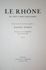 PIZE (Louis) & LE CARDONNEL (Louis). Le Rhône. Ouvrage orné d'eaux-fortes de Maurice Robert. Poème de Louis Le Cardonnel. Texte de Louis Pize (3).. Grenoble, Arthaud, 1929-1931. Deux volumes in-folio, en feuilles sous couvertures illustrées...