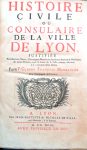 MENESTRIER (Claude François) - Histoire Civile ou Consulaire de la Ville de Lyon.. A Lyon, De Ville, 1696. Fort in-folio, veau tabac du temps, le dos à nerfs. Planches dépliantes et de très nombreuses figures dans le texte. Ouvrage de...