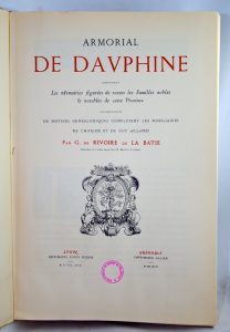 RIVOIRE DE LA BATIE (Gustave, Marquis de ). Armorial de Dauphiné, contenant les armoiries figurées de toutes les familles nobles & notables de cette province, accompagnées de notices généalogiques complétant les nobiliaires de Chorier et de...
