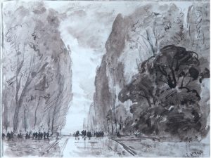 DREVET (Joannès). Aux Bois 1926. Dessin au lavis et plume, daté 1926 et signé en bas à droite - reproduit au recueil Lucas page 46.