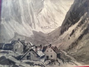DREVET (Joannès). Valgaudemar. 1929. Cadre mouluré et doré avec large rocaille aux angles Lavis signé, daté et localisé en bas à gauche Très bon état.