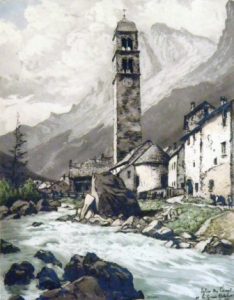 DREVET (Joanny). La Grave – L'Oratoire Sainte-Anne (3). 1948. Encadrée avec baguette en chêne teinté et mouluré Lithographie originale en couleurs, tirage à 350 exemplaires Feuille avec les marges : 515 x 410 cm Epreuve n° 303/350 [signée...