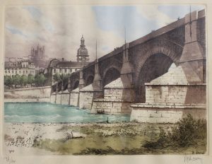 DREVET (Joanny). L'Ubaye. 1942. Baguette avec simple décrochement en chêne foncé Lithographie originale en couleurs, tirage à 350 exemplaires Aquatinte, signée en bas à droite et numérotée 91/350 H. 23 cm L. 29 cm - feuille 485 x 405 mm...