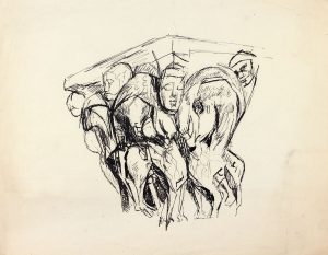 Max par lui-même, octobre 1926 ; visage de profil au crayon, sur un feuillet de carnet (13,3 x 9,5 cm) ; au dos un texte d’une autre main, La Locomotive. Portrait d’homme à mi-corps, avec manteau et chapeau, à la plume ; signé dans le coin supérieur droit (17 x 11 cm). Femme dans un intérieur ; signé et daté « Max Jacob 1928 » en bas à droite (18,5 x 12 cm, bords un peu effrangés). Chapiteau d’église ; beau dessin à la plume (21 x 27 cm).. Profil de Christ à la plume sur un fragment découpé de manuscrit autographe (11 x 7 cm).