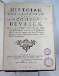 (LE BRASSEUR) - Histoire civile & Ecclésiastique du Comte d’Evreux, ou l’on voit tout ce qui s’est passé depuis la fondation de la Monarchie.. A Paris, François Barois, 1712. In-4, veau du temps, le dos à nerfs orné. Planches hors...