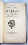 SCARRON. Les trois Dorotées, ou les Iodelet Soufflete. Comédie de Monsieur de Scarron. Suivant la Copie, à Paris, 1648. In-12, maroquin bleu nuit de Thibaron Joly, triple filet sur les plats, dos à nerfs orné, toutes tranches dorées, légers...