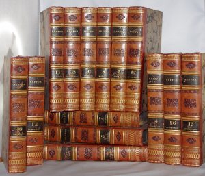 BUFFON – LACÉPÈDE. Œuvres complètes de BUFFON, enrichies d’une vue générale des progrès de plusieurs branches des sciences naturelles.. A Paris, Eymer, 1825. 17 volumes in-8, en dem. veau rose orné de motifs romantiques. Rel. signée...