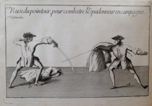 GIRARD (J. F.)- Nouveau traité de la perfection des Armes… Orné de figures en taille douce… A Paris, Chez Moette, etc, 1736. In-folio, obl. Relié en veau du temps, le dos à nerfs orné. Qques taches en bas de certaines planches, sans...