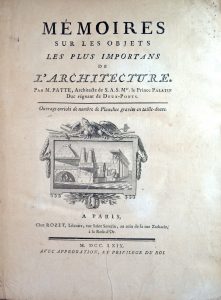 PATTE. Mémoires sur les objets les plus importants de l’Architecture. A Paris, Rozet, 1759. In-4, veau du temps, restauré, dos lisse orné, tranches blanches. Édition originale de ce très important traité. 27 planches hors texte dont 25...