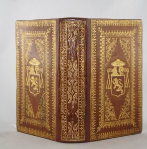 AVLI PERSI. Flacci Satirarum Liber… Paris, Drouart, 1615. In-8, maroquin citron, armes au centre des plats et un important décor doré les entourant, toutes tranches dorées. Reliure de qualité.