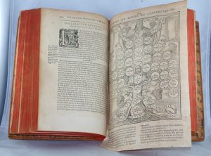 2 planches dépliantes gravées sur bois, basane blonde du XVIIIe siècle, dos lisse orné de roulettes superposées, pièce de titre rouge, tranches rouges
