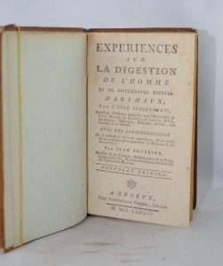 SPALLANZANI (Abbé L) - Expériences sur la digestion de l'homme et de différentes espèces d'animaux. Avec des considérations sur sa méthode de faire des expériences, & les conséquences pratiques qu'on peut tirer en Médecine de ses...