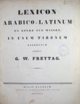 FREYTAG (G.W.). Lexicon arabico-latinum ex opere suo maiore in usum tironum excerptum. Halis Saxonum, C.A. Schwetschke et filium, 1837, in-4, demi-veau moderne, dos lisse, répertoire à onglets en papier Première édition de cet important...